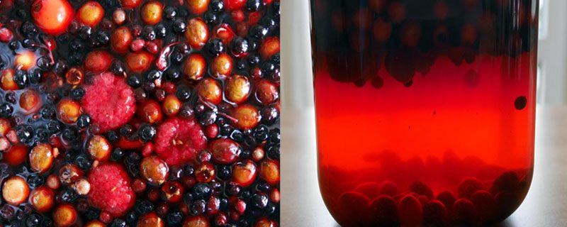 Nach dieser Zeit können Sie die Früchte ab sieben und den so gewonnenen Wildfrucht-Essig in gut schließende, hübsche Flaschen umfüllen.